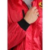 - ATTENTION TO DETAIL: Attention to detail is key in our Cobra Kai costumes, especially the red Cobra Kai jacket. The jacket features a front zipper with a placket that snaps shut and a metal 'D' ring on the detachable collar piece.