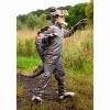 • Jumpsuit has zipper down center front