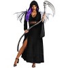 Embrace the dark and enchanting allure of the night with the Women's Winged Reaper Halloween Costume. This striking outfit seamlessly blends elegance with a hint of spookiness, making it the ideal choice for Halloween parties, themed events, or any occasion where you want to make a dramatic statement that leaves a lasting impression.The costume features a flowing, floor-length black gown crafted from high-quality, lightweight fabric that drapes beautifully as you move. The gown's elegant design includes subtle details such as intricate accents and shimmering embellishments, which add depth and dimension, enhancing the overall aesthetic. As you walk, the wings flutter gently, transforming your every move into a spellbinding display that draws attention.Designed for both comfort and style, this costume allows for easy movement while maintaining a hauntingly chic appearance. Whether you're dancing the night away, exploring a haunted house, or mingling at a costume party, you can do so with confidence and ease.To elevate your ensemble, consider accessorizing with a dramatic makeup look—think smoky eyes, dark lips, and ethereal highlights that shimmer in the candlelight. Pair the costume with a spooky staff or a decorative scythe to truly embody the reaper spirit. With your creativity, you can craft a captivating character that tells a story, making your presence unforgettable at any event.Ideal for group themes, this costume also pairs well with other reaper or dark-themed outfits, allowing you and your friends to create an eerie ensemble that’s sure to steal the show. With the Women's Winged Reaper Halloween Costume, you're not just wearing a costume; you're stepping into a role that evokes the mysteries of the night and the magic of Halloween.Whether you're attending a haunted house event, hosting a frightful gathering, or simply enjoying a night out in your favorite haunted attire, this costume promises to elevate your look and ensure that you are the center of attention. Channel your inner mystique, unleash your dark side, and prepare for a night of enchantment and adventure. With the Women's Winged Reaper Halloween Costume, you're sure to create unforgettable memories that will linger long after the night is over.