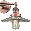The cast brass frame features an antique copper finish that highlights the distinct design of this adjustable wall sconce. The halophane glass shades provide a beautiful eye-catching touch. For further convenience, this wall sconce can be installed with the light pointing up or down.