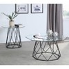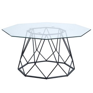 Unveil the shades and engage nature indoors. The sunshine will reflect beautifully off the tempered glass tabletop. This modern octagon-shaped coffee table sits on steel support with a complex geometric design. Choose between a modern black, neutral dark gray, or minimalist white finished table. The open and airy base design evokes a friendly environment in the living room or home office.