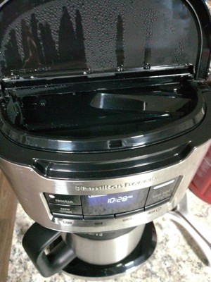 [This review was collected as part of a promotion.] I like this coffeemaker. I want to LOVE this coffeemaker. It has some wonderful features, namely the front-loading water reservoir, the stainless carafe and beautiful display. But it's a trade-off. There is a LOT of plastic on this particular model – too much so, I think. It seems cheaply made because of that, which takes away from the whole idea of the stainless accents. The lid on the carafe is a bit of a struggle. It doesn't fit exactly right and is difficult to lock in position at times. The swing-out filter is also difficult to lock back in every now and again. And like other models, there is no battery back up for the clock, which means you need to reset it if you unplug it. I love the carafe, itself. The different brew settings are nice. It makes a pot of coffee fairly quickly and the metal filter is wonderful. You don't need to use a paper filter with it. All in all, it's a good coffeemaker. I hope Hamilton Beach can make a few improvements to this model and they'll have an excellent product. Thank you for the opportunity to review it.