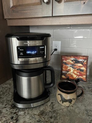 [This review was collected as part of a promotion.] I love the size of this coffee pot. It fits very nicely on my counter and under my cabinets. It has a smaller profile but still delivers excellent coffee. I also really like the temperature control for the temperature of the coffee. I like mine hotter than most people do and this pot delivers. Another great feature is the thermal carafe. It keeps the coffee hot without the burnt flavor that can occur when a glass pot is left on the warming plate. It is very easy to set the timer and clock without having to look for the manual when you need to make a change. The filter is very easy to change and fill with coffee. Overall this coffee pot is another winner from Hamilton Beach. Love their coffee pots!