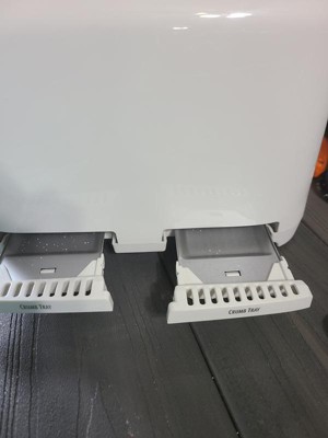 [This review was collected as part of a promotion.] The four slice toaster is Nice. I like the width of the slots for the breads or etc. I love the size of the toaster. How it is rounded on the edges, the color is nice and love the crumb trays how they are individual trays for each side. Cleaning is so easy. The toast come out perfect. All in all I would buy this again. The one thing I don't like is how cheap the buttons are to push the toast down. I had to push it a couple times to get it to lock in. Maybe it is just mine and it is a issue.