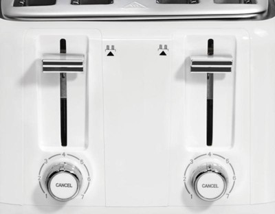 [This review was collected as part of a promotion.] Love this toaster! Before I got this we only had one that had the two slots for bread and this one has 4! I also love how sleek it is and how good it looks with my other appliances AND my matching microwave. I have children that love buttons and levers so I also really love that I can just simply hit the cancel button if they walk by and push the levers down without changing my desire setting. I have 0 complaints. This is so nice and I feel fancy using it.