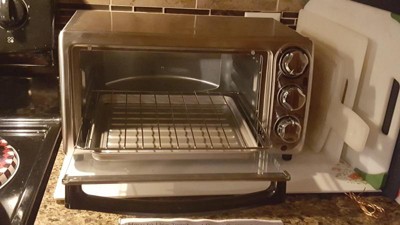 [This review was collected as part of a promotion.] This is a great little addition to my kitchen; it's a bit larger than our toaster was, but does so much more. Bake, broil, toast; there are 5 different settings, plus a temperature control and timer. The tray on the bottom is for catching crumbs, there's also a rack with a tray that can be slid in and out in case you cook something that might bubble over. I use it most mornings for toasting a bagel while I fix a cup of coffee.