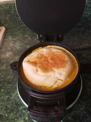 [This review was collected as part of a promotion.] Everyone in our family loved this little sandwich maker. The positives for me: it's easy to use, easy to clean and is small so I can store it easily which is a big deal when you don't have a lot of storage space. The plates removed making clean up a breeze. There's nothing worse than an appliance that takes longer to clean than it does to use. The only drawback and I'd say it's a very minor one is that it doesn't have an indicator letting you know your sandwich is done. Don't forget to check on your sandwich or you may get it a little more crispier than you want. All in all a great little appliance. One of my daughters has a gluten sensitivity so she's not able to eat the breakfast sandwiches that you can buy in your local grocery stores freezer section. The great thing about this sandwich maker is the ability to customize the sandwich with your favorite meats, cheeses, veggies, etc giving you a lot of options way more than pre-made. We made our sandwiches with both regular and gluten free English muffins, cooked bacon, eggs, and sliced cheese. Everything heated up nicely, melting the cheese and crisping up the English muffins. I've made a total of 10 sandwiches and each time the eggs came out fluffy and cooked all the way through.