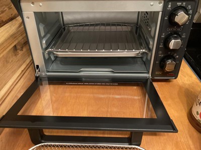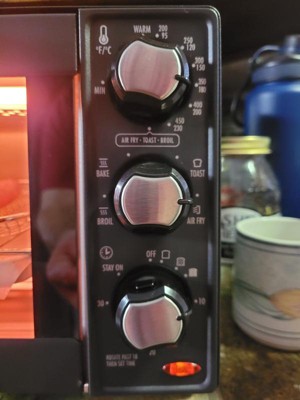 [This review was collected as part of a promotion.] This toaster/air fryer combo has a 4 slice capacity. It's a little on the small side but is sufficient for small toasting and baking jobs. The manual timer has an auto shut-off and the old familiar "ding" when the timer goes off. It includes a metal air fryer basket, bake pan, broil rack, and a slide-out crumb tray. The temperature is adjustable from 200 degrees up to 450. The good - the toasting and baking are fast as this thing heats up quickly. It's great for small toasting and baking jobs. The bad - for an older guy, the font is too small on all of the dial options and they're hard to read if you don't have a lot of light available. I prefer models with digital settings and timers. The air fryer function is OK, but not as good or as fast as a dedicated air fryer unit. Also, be careful - this thing will burn you quickly. The entire surface of the toaster gets extremely hot. Be sure there is nothing flammable anywhere close. As you will see in the pics, the front of my ham & cheese sliders got a little more uneven baking towards the front. If you have limited counter space, this would probably be a good option.