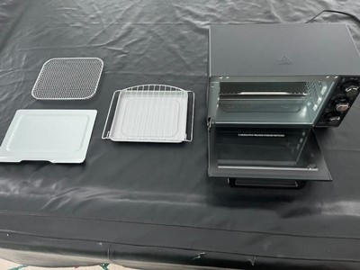 - INCLUDES METAL AIR-FRY BASKET, BAKE PAN AND BROIL RACK. The air fryer oven comes with all the accessories you need to air fry, bake, broil, and toast, plus a slide-out crumb tray.