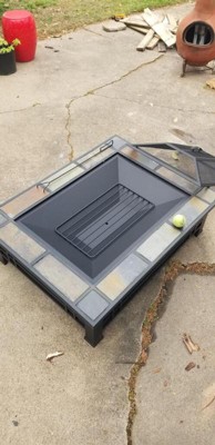 Hamilton Rectangle Wood Burning Fire Pit Brown - Real Flame: Slate Top, Mission Style Frame, Spark Screen & Cover