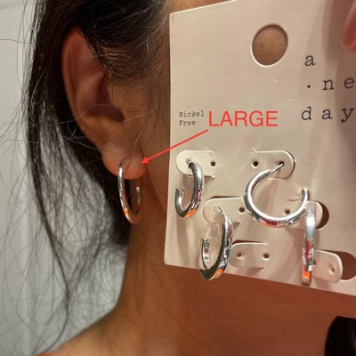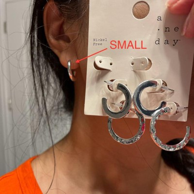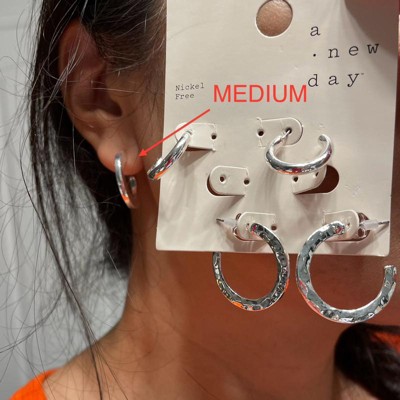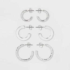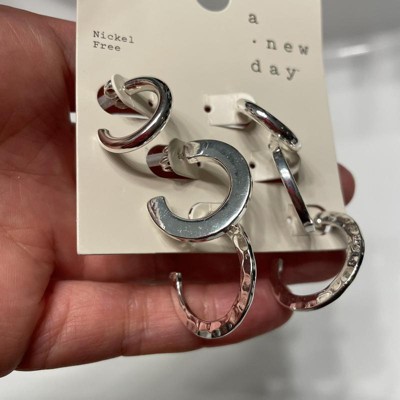 Hammered Metal Hoop Trio Earring Set 3pc - A New Day™ Silver: Nickel-Free Post, Women's Accessories, 0.98" Diameter