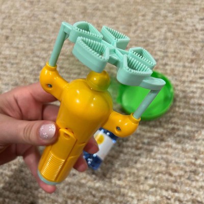 Overall this is a fun bubble toy! Don’t love the tray where you have to dip it to get the bubbles. As you can guess my kids loved to dump the tray out leading to lots of messes and spilled bubbles. It is fun tho and easy to play with. Also, you do need your own AA battery so be prepared for that before playing!