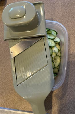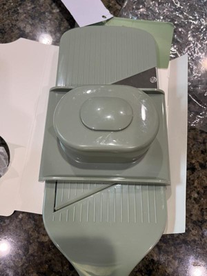 This is my first mandoline and I’m glad I purchased this for the price and quality! I’m a home cook and this was a great way to spruce up my salads (think thin sliced raw carrots!). I love the neutral green color and that it’s not clunky by design. It’s easy to use, too. I’ve been throwing it in the dish washer the last few months and it’s held up pretty well and is still sharp. Highly recommend if you’re a beginner mandoline user like me.