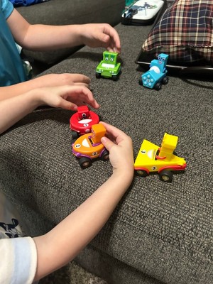 [This review was collected as part of a promotion.] My kids love these little cars. They are the perfect size for my 2 year old without being too big. Each car corresponds with a number block, and has the corresponding number of sides, number of lights, shape on the wheels, etc. So for example, car number 3 is a triangle with 3 headlights and triangles on the wheels. They're so cute! I received this product for free in exchange for a review, but I would have bought these myself if not. Our house loves the numberblocks!