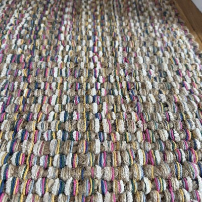 This is such a nice neutral with a bit of color added. It’s thick and well made and feels made to last even in high traffic. Size is perfect for a kitchen or an entrance way. Unique styling really adds some texture to any room