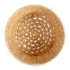 - A cylindrical basket handwoven from natural corn leaf, presenting a simple yet charming round form