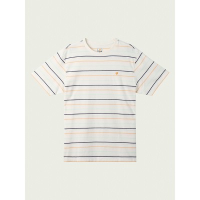 This is a vintage inspired striped tee that has a soft, knit feel and crew neckline. The standard fit is relaxed in the body and sleeves.
