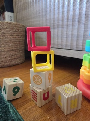 - Designed to be easily gripped and stacked by little hands.