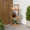 This classic 3-tier storage caddy fits easily into small spaces. The rustic slatted design is made from water-resistant acacia wood with a protective oil finish. Set one in the shower, beside the tub, or use it as a plant stand indoors or outdoors.