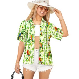 HAPPY BAY Hawaiian Shirts Womens Casual Summer Beach Party Short Sleeve Tropical Vacation Button Up Blouse Shirt Collared Dress Shirts - 1 of 4