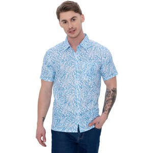 The men vacation beach shirt designed with relaxed fit, button down closure, short sleeve and left chest pocket.