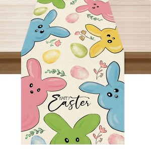 Happy Easter Colorful Bunny Rabbits Easter Table Runner Table Decoration for Party Home Kitchen Dining Holiday Decor 13x72 Inch