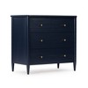 Add timeless mid-century charm and smart storage to your child’s room with the Max & Lily Hudson 4-Drawer Dresser. Featuring smooth tapered legs and antique brass knobs, this kids’ dresser blends modern design with playful, kid-friendly character. Flush, color-matched hardware completes the clean, contemporary look that grows with your child’s style. Crafted from knot-free, solid pine wood with engineered wood drawer bottoms, this solid wood dresser is built to last through years of use. The clean, low-VOC finish supports a healthier indoor environment, making it a safe and durable choice for any kids’ bedroom. Four roomy drawers provide plenty of space for clothes, toys, and more, while the spacious top surface is perfect for decor and everyday essentials. The top drawer is divided to organize smaller items. Easy-glide drawers with securely fastened antique brass knobs make storage simple for kids to handle on their own. Includes all hardware, tools, and easy-to-follow instructions for quick setup. Tested to meet or exceed federal safety standards, the Hudson 4-Drawer Dresser combines solid wood strength, modern style, and kid-approved function that lasts through every stage.