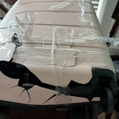 Bought this suitcase for a trip to Europe, as we land and go to collect our luggage the suitcase comes out in pieces. Big chunks missing. Been traveling for decades and this is a first