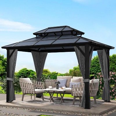 Product Name: 10' x 12' Hardtop Gazebo, Aluminum Frame Gazebos with GPolycarbonate Double Roof, Permanent Outdoor Metal Pavilion Weatherproof & UV Protection