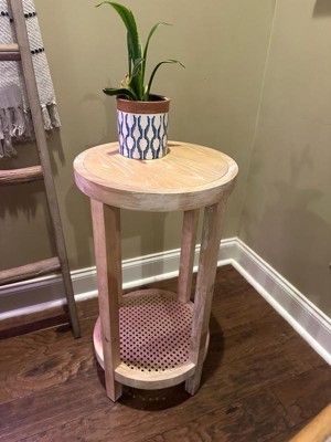 Harley Round Accent Table Wheat: Martha Stewart, Ash Veneer, Rattan Shelf, 28" High