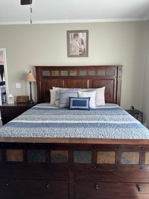 [This review was collected as part of a promotion.] We love this Rhapsody brand 6 pc reversible quilt set with throw pillows. It tied together the design I was going for in my bedroom. I only wish it came with a dust skirt. But the pillows are beautiful and the quilt is very sturdy. It’s comfortable, warm and stylish.