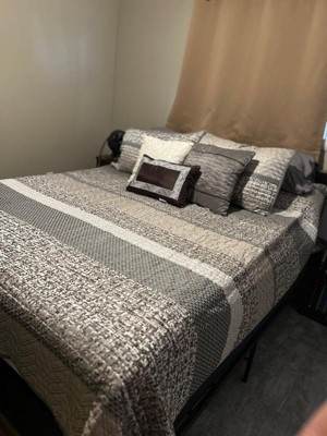 [This review was collected as part of a promotion.] I love the grey colors and different textures in the quilt. I feel like the material is very versatile and durable. I would love if this was a little more softer but it is a great value!