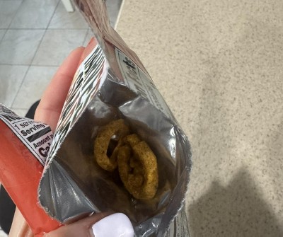 We opened a bag of the harvest snaps baked red lentil and there was 2 and a couple pieces of the crunch loops in one of the bags, total <3.