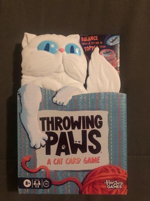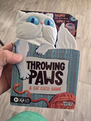 [This review was collected as part of a promotion.] I recently played Throwing Paws by Hasbro and I honestly had so much fun, Its a simple card game, but stacking the cards on the wobbly cat base makes it super intense and funny.