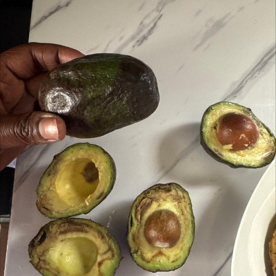 These avocados are black not one is good enough to eat . They shouldn’t be on the shelf extremely dissatisfied