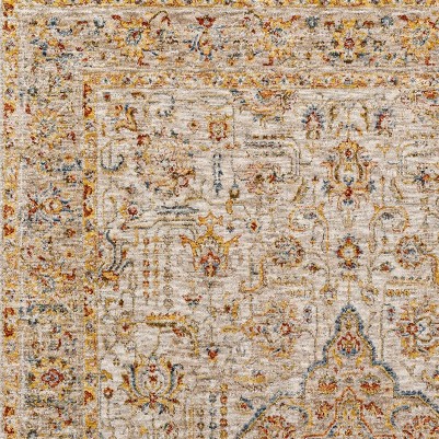 A: The rug is designed to complement traditional, farmhouse, and elegant decor styles.
