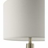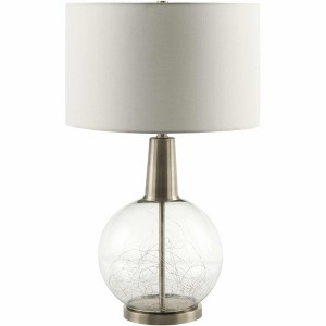 Brand: Hauteloom < br / > Collection: Kapinkong < br / > Colors: Clear, Metallic - Nickel, White < br / > Style: Bohemian, Transitional < br / > Size: 30"H x 17"W x 17"D < br / > Shape: Circular < br / > Material: Base: Iron; Body: Glass, Iron; Finial: Iron; Shade (Inside): Polyester; Shade (Outside): Linen < br / > Roomtype: Living Room, Bedroom < br / > Made in: China < br / >