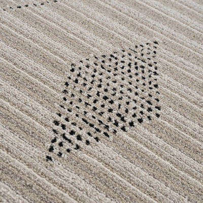 Brand: Hauteloom. Collection: Nalu. Colors: Ivory, Beige. Construction: Machine Woven. Material: 100% Polyester. Pile: High Pile. Pile Height: 0.59". Styles: Geometric. Backing: Cotton. Made In: Turkey. Thickness: 1.6".
