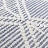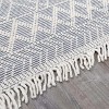 About:This hand-woven wool and cotton rug features a sophisticated trellis pattern, offering a blend of traditional charm and contemporary elegance. The high-low texture of the rug adds a unique tactile element, enhancing its visual appeal and comfort underfoot. Adorned with tasteful tassels, this rug brings a classic yet modern touch to any room. Its combination of wool and cotton materials ensures durability while providing a soft, inviting surface, making it a luxurious and practical choice for any living space.Collection:DerrimutColors:Ivory, DenimConstruction:Hand WovenMaterial:60% Cotton / 40% NZ WoolPile:No PileStyles:Transitional,TraditionalMade In:IndiaThickness:0.47"Fringe Length:2"
