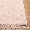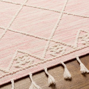 Collection: Pupukea. Colors: Cream, Pale Pink. Construction: Hand Woven. Material: 100% Wool. Pile: No Pile. Styles: Transitional,Bohemian. Made In: India. Thickness: 0.2". Fringe Length: 3.5".