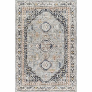 Collection: Gilda. Colors: Light Gray. Construction: Machine Woven. Material: 100% Polyester. Pile: Medium Pile. Pile Height: 0.31". Styles: Traditional. Made In: Turkey. Thickness: 0.39".