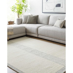 Collection: Ande. Colors: Cream, Gray. Construction: Hand Tufted. Material: 100% Wool. Pile: Low Pile. Pile Height: 0.2". Styles: Contemporary. Backing: Canvas. Made In: India. Thickness: 0.35".