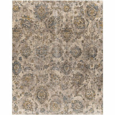 Collection: Gimli. Colors: Mustard, Teal, Charcoal, Pale Blue, Beige. Construction: Machine Woven. Material: 100% Polyester. Pile: Medium Pile. Pile Height: 0.35". Styles: Traditional. Made In: Turkey. Thickness: 0.43". Fringe Length: 0.43".