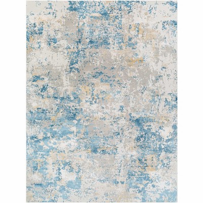 Collection: Watersmeet. Colors: Mustard, Light Blue, Medium Brown, Tan. Construction: Machine Woven. Material: 70% Viscose, 30% Polyester. Pile: Medium Pile. Pile Height: 0.3". Styles: Contemporary. Made In: Turkey. Thickness: 0.31".
