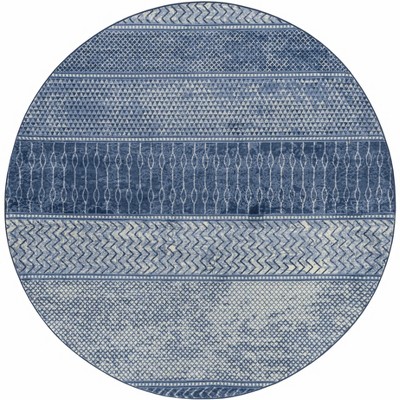 Collection: Nampa. Colors: Navy, Denim, Ivory. Construction: Machine Woven. Material: 100% Polypropylene. Pile: Medium Pile. Pile Height: 0.31". Styles: Transitional,Bohemian. Made In: Turkey. Thickness: 0.35".