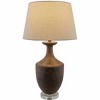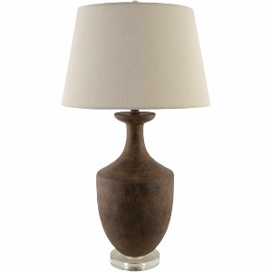 Brand: Hauteloom < br / > Collection: Volturino < br / > Colors: Dark Brown, Clear, White < br / > Style: Traditional < br / > Size: 31"H x 17"W x 17"D < br / > Shape: Circular < br / > Material: Base: Crystal; Body: Resin; Finial: Crystal; Shade (Inside): Polyester; Shade (Outside): Linen, Polyester < br / > Roomtype: Living Room, Bedroom < br / > Made in: China < br / >