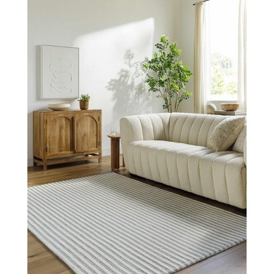 Collection: Xaila. Colors: Off White, Pearl, Ash. Construction: Hand Tufted. Material: 100% Wool. Pile: Low Pile. Pile Height: 0.2". Styles: Contemporary. Backing: Canvas. Made In: India. Thickness: 0.47".