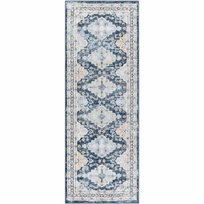 Brand: Hauteloom < br / > Collection: Yoshi < br / > Colors: Cream, Gray, Denim < br / > Style: Traditional < br / > Size: 5'3" x 7'3" < br / > Shape: Rectangle < br / > Material: Face: 100% Polyester < br / > Construction: Machine Woven < br / > Roomtype: Living Room, Bedroom < br / > Pile: Low Pile < br / > Machine Washable: Yes < br / > Made in: Turkey < br / >