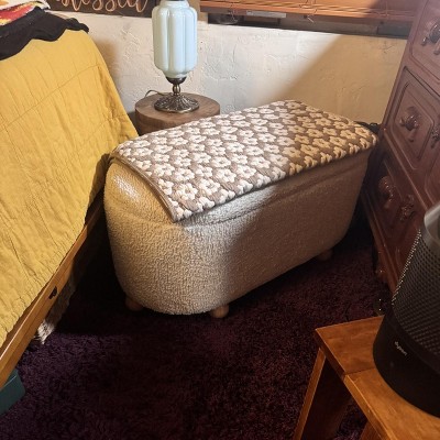 I like be this cute little Boucle storage bench. I use it in my daughter’s room for all of her extra things. I especially love the ball feet and feel like it makes it more grown up and the bench can grow with her and what ever decor we change. Love it!