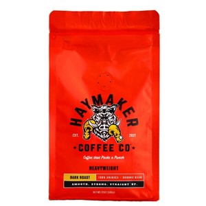Haymaker Coffee Co's Heavyweight (Dark Roast)—a coffee with a rich, dark surface and a bold, full-bodied flavor. This low-acidity brew offers notes of caramel, chocolate, nuts, a hint of fruit with extremely smooth taste without the bitterness. It's a bold and unforgettable coffee experience that will awaken your senses and gives you that burst of energy to go.